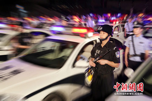 中新網杭州6月2日電(記者 趙曄嬌 通訊員 蕭公宣)2日晚,杭州市公安局蕭山分局在該區全面啟動夏季治安“警燈閃亮•千警巡邏•世博護衛”行動。公安特警、刑偵民警、交通民警、治安民警、社區民警、警犬訓導員(含警犬)嚴陣以待,深入推進世博安保工作,強化夏季社會面治安巡防,營造強大斗爭聲勢。