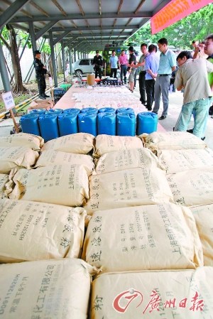 據(jù)警方介紹,早在1999年潘某斌就因?yàn)榉欠ǔ钟卸酒仿辄S素,被內(nèi)蒙古警方抓獲,并獲刑10年。2003年被釋放后來(lái)到廣州,開始了更猖狂的販毒。為了掩人耳目,潘某斌開起了化工門市部,租了整棟樓,里面都放著化工原料,