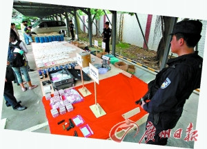 4月22日,專案組掌握潘某斌準(zhǔn)備進(jìn)行大宗毒品交易的線索。在省公安廳的現(xiàn)場(chǎng)指揮和廣州警方的支持下,專案調(diào)集100余警力,開始“收網(wǎng)”。當(dāng)晚10時(shí),當(dāng)潘某斌和買家交易時(shí)就出現(xiàn)了前文中的那一幕。