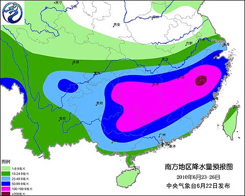 6月22日10時,中國氣象局召開南方暴雨專題新聞發布會,會中談到了南方已經出現的暴雨情況以及未來的天氣發展。中國氣象局應急減災與公共服務司司長陳振林指出,23日至26日,江淮、江南、華南大部以及西南地區東部等地又將出現一次強降雨過程。湖南、江西、福建、廣西等地的汛情將進一步發展,建議各地、各有關部門及時采取措施,加強防范區域性洪澇災害和嚴重次生災害。