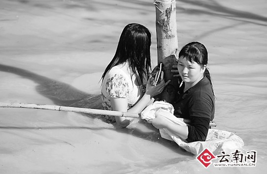 水中,許多孩子正卷起褲腳在玩耍,完全不知道這場災害的后果。據大龍井村黨小組書記秦萬福說,此次遭遇的暴雨是百年難遇的,村里面80多歲的老人都是從來未遇見過。昨日上午9時,聽說附近的龍泉水庫有可能決堤后,整個村寨近1500多名男女老少來不及做任何事情,在村干部的組織下,用摩托車等能派上用場的車輛,趕緊把村民撤離到了山頂上。