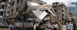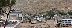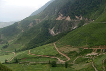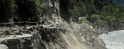 泥石流是山體松動造成的,常常發生在半干旱的山區或高原冰川區。這里地形陡峭,樹木植被很少,一旦暴雨來臨或冰川解凍,石塊吸足了水分,便出現松動,開始順著斜坡向下移動。隨著互相擠壓、沖撞,大大小小的泥石夾雜著泥漿水,匯成一股巨大的洪流滾滾而下,于是就出現了泥石流。