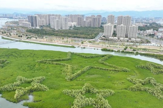 退潮時分,在廈門市翔安區下潭尾紅樹林公園的灘涂上,一組由紅樹林勾勒的地標景觀露出海面,郁郁蔥蔥,頗為壯觀。 [詳細]