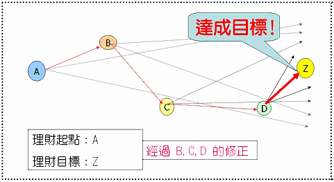 每當查覺方向偏差時,就是“適時調整”的時候。所以重新找出新方向,即從B點至Z點的雙箭頭所涵蓋的范圍。