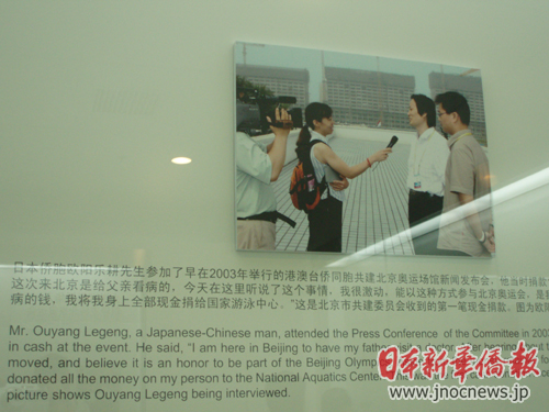 國家游泳中心“水立方”是由107個(gè)國家和地區(qū)的35萬港澳臺(tái)同胞和海外華僑華人共同捐資9.4億元建設(shè)的。展覽入口處大大書寫著“永不泯滅赤子心”深深打動(dòng)了每一個(gè)在場的人。