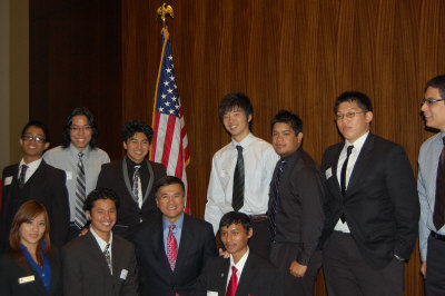 西雅圖生長的駱家輝受到拉斯維加斯亞裔商會熱忱歡迎,拉斯維加斯亞裔青年學生代表多人也經亞商會安排與駱家輝見面。他表示欣喜青年學子參政,并勉勵大家努力向前。(馮鳴臺)