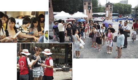 一行人抵達(dá)景福宮的時(shí)間是下午2時(shí)45分,比計(jì)劃晚了40分鐘。原因是部分游客在仁寺洞購(gòu)物拖延了時(shí)間。導(dǎo)游張某開(kāi)始對(duì)景福宮進(jìn)行介紹,但幾乎沒(méi)有人聽(tīng)。張某說(shuō):“來(lái)韓國(guó)旅游的游客大都是大學(xué)畢業(yè)的二、三十歲女性,在中國(guó)引領(lǐng)消費(fèi)文化的白領(lǐng)女性。他們比起文化遺產(chǎn),更關(guān)心購(gòu)物!