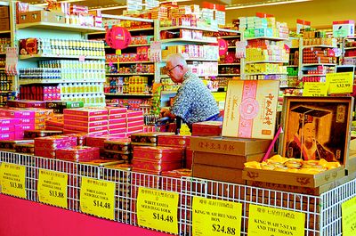 圣蓋博谷華人聚居城市華資超市,月餅上周開(kāi)始上市,本地不少糕餅廠家也從本周開(kāi)始推出月餅專(zhuān)柜。華資月餅進(jìn)口商表示,外州訂單,已從本周開(kāi)始發(fā)貨,預(yù)計(jì)下周起全面上架。