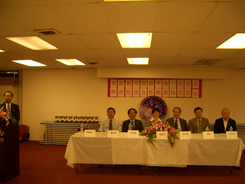論壇由休斯頓中國和平統一促進會常務副會長陳家杰主持。在高燕平總領事的提議下,大會為幾天前在青海玉樹大地震中遇難的祖國同胞默哀。高總領事介紹了兩岸經濟合作框架協議(簡稱ECFA)協商的主要內容,和對大陸及臺灣地區的經濟影響。她認為,盡早就此協議和早期收獲達成一致,最大限度地實現兩岸經濟優勢互補、互利雙贏,一定會加快兩岸經濟關系正常化、制度化和自由化的步伐,為兩岸關系和平發展奠定更加堅實的基礎。