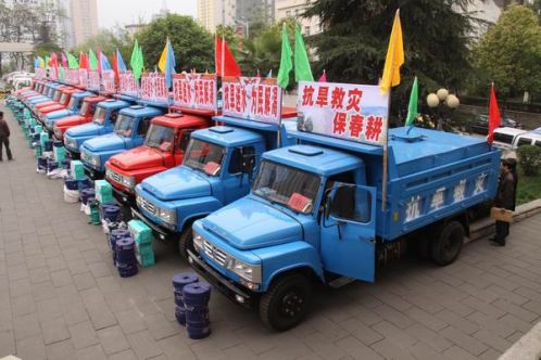 中新網4月6日電 據黔南州僑聯消息,隨著貴州省黔南州旱情的不斷擴大,送水也成為當前抗旱保民生最有效的辦法。為全面保障缺水鄉鎮的飲水問題,州委、州政府多次召開會議研究,決定緊急采購126臺運水車輛分發給各縣市區用于抗旱救災。