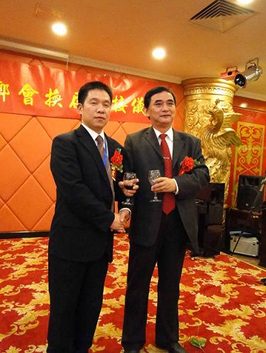 匈華總會主席劉文建(右)祝賀李宗彬當選匈牙利福清同鄉會會長(左)。
