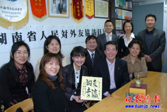 日本湖南人會會長段躍中向龐力平副會長等介紹了該會成立10個月的情況。日本湖南人會去年5月在東京成立。成立伊始,就堅持利用主流社會資源、面向中日兩國辦會的方針,不僅發揮會員的作用,還團結更多喜歡湖南和中國的日本朋友,同時成立了“日本湖南之友會”,邀請先后擔任日本防衛大臣和經濟產業大臣的參議院議員林芳正、日本眾議院議員后藤田正純、參議院議員木俁佳丈、著名作家石川好、日中協會理事長白西紳一郎等出任該會共同代表。日本前首相村山富市聽取了段躍中關于創辦“日本湖南之友會” “日本湖南人會”的經過,稱贊這是一件有利于日中友好、有利于促進日本和湖南省交流的好事,愉快地接受了出任“日本湖南之友會” “日本湖南人會”特別顧問的邀請。