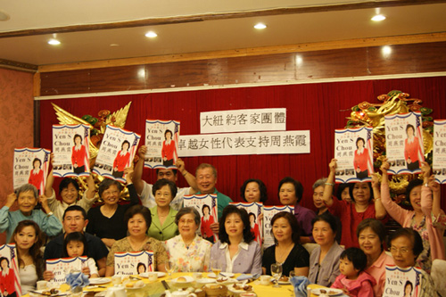 大紐約客家團體卓越女性代表近30人參加了4日的背書大會。美東臺灣客家聯誼會名譽會長傅純美代表眾多客家團體女性肯定周燕霞對紐約的客家人貢獻良多,并對客家人中出現了有能力的人出面競選市議員感到光榮。傅純美特別提到,周燕霞多年來一直熱心社區事務,社區服務經驗豐富,并有著良好的從政背景,是市議員最有資格的當選人。