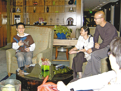 黃西10月初在舊金山Punchline俱樂部的表演引起轟動,演出后還有一群粉絲追著他到旅館內聊天。 (美國《世界日報》/劉曉莉攝影)