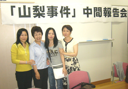 為了向大家表示感謝,在報告會上,三個人特地用日語寫了發言稿,并依次上臺發言。三個人表示,如果沒有大家的努力,僅憑研修生自己的力量若想解決問題是絕對不可能的。來日本以前,大家對日本根本不了解,到了工廠工作后也像井底之蛙一樣。如果不是這么多好心人千里迢迢趕到山梨縣為自己奔走呼吁,事情發展到今天會是什么樣子還是未知數。在維權的這段時間里,大家才了解到了真正的日本。和熱心人士共同度過的日子將是自己人生中的難忘回憶。目前6個人取得的成果還只是階段性的,今后還會通過一系列法律手段解決剩余問題,希望大家能夠繼續支持。最后女工們還邀請到場的各位到黃石做客。三個人的樸實發言讓臺下的一位日本老媽媽感動的流下淚來,看到老媽媽落淚,辛酸往涌上心頭的三名女工也抑制不住自己的情緒在臺上痛哭起來。