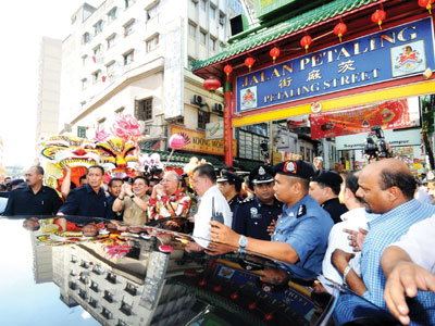 首相署部長丹斯里許子根、貿消部長拿督斯里依斯邁沙比里、馬華領袖、聯邦直轄區部長拿督拉惹儂仄、副部長拿督沙拉瓦南、隆市長拿督阿末弗亞、吉免登區國會議員方貴倫、吉隆坡小販商業公會副主席拿督洪細弟眾華團領袖等人約下午4時便準備就緒,在茨廠街牌坊入口處恭迎納吉。