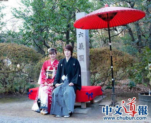 2010年2月7日,記者在日本舊古河庭院見到了這一對幸福的夫妻。他們已經(jīng)穿上婚紗和禮服,準備拍攝婚紗照了。