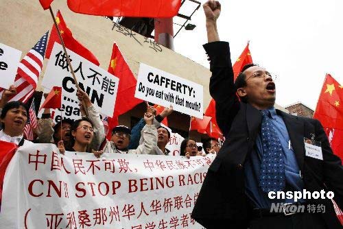 4月9日,北京奧運火炬在舊金山傳遞,CNN主持人卡弗蒂稱“在過去五十年里中國人基本上一直是一幫暴民和匪徒”,激起華人社區憤怒。紐約居民梁淑冰聯合中國公民李麗蘭(音譯),向CNN、主持人卡弗蒂和CNN母公司特納廣播公司提出集體訴訟,要求賠償13億美元,獲當地一家聯邦法院受理。