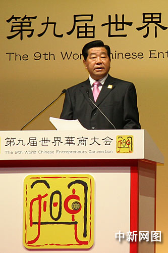 資料圖片:2007年9月15日上午,第九屆世界華商大會在日本神戶開幕。中國全國政協主席賈慶林出席大會開幕式并作重要講話。 崔思恩 攝