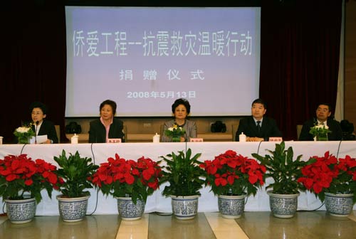 中新網5月13日電 (王海波 陸春艷)5月13日下午,國務院僑辦舉行“僑愛工程——抗震救災溫暖行動”捐款儀式。海內外華商代表向國僑辦主任李海峰轉交了救災善款。截至目前,中國僑商投資企業協會會員及海內外華商為中國四川地震災區捐款捐物共計6850萬元人民幣。