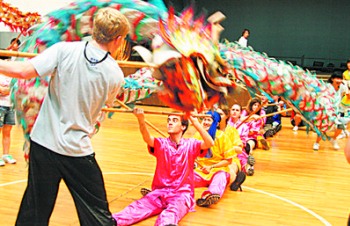 鑼鼓聲中,湖南涉外經濟學院舞龍舞獅隊千變萬化的動作,讓美國學生感到震撼,也不忘嘗試一番中國龍的韻味。而南棍和太極等中國功夫更讓美國學生興致高漲。期間,美國學生擺弄起中國的筆墨紙硯,還真是有模有樣。
