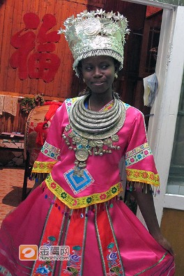 漢語橋選手“黑珍珠”:穿上苗族服裝很興奮
