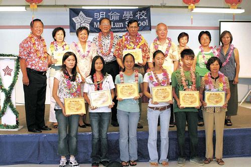 中新網9月21日電 據美國《星島日報》報道,美國夏威夷明倫學校近日召開頒獎大會,褒揚在第10屆世界華人學生作文大賽中獲獎的師生。5位學生和4位教師高興地從學校董事長方惠思手中接過由大賽組委會從中國寄來的得獎證書,全校師生也分享了他們的光榮。
