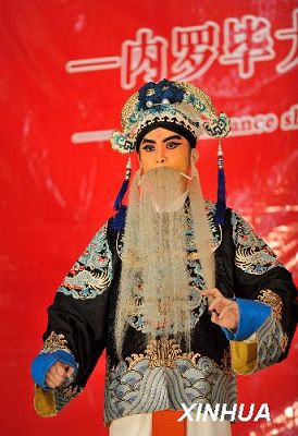 10月12日,在肯尼亞首都內(nèi)羅畢,一名來自北京理工大學(xué)的大學(xué)生在聯(lián)歡會上表演京劇。當(dāng)天,200多名來自北京理工大學(xué)、內(nèi)羅畢大學(xué)孔子學(xué)院和津巴布韋大學(xué)孔子學(xué)院的大學(xué)生們在內(nèi)羅畢大學(xué)舉行聯(lián)歡會,同學(xué)們以合唱、舞蹈等精彩的節(jié)目交流情感傳遞友誼。(新華社/徐速繪 攝)