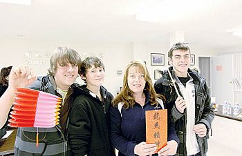 義工瑞安、倫德甘、特羅及詹姆斯都很高興參加中文學習。