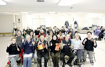 列治文華人社區協會部分負責人與學員們一起“豎起大拇指”,稱贊自己努力學習,大有收獲。 (熊澤廷 攝)