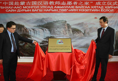 中新網1月18日電 據中國外交部網站消息,1月16日,“中國赴蒙古國漢語教師志愿者之家”成立儀式在烏蘭巴托市隆重舉行。中國駐蒙古國大使館政務參贊王福康、蒙古國教文科部國際合作司司長道力鋼、中國駐蒙使館參贊吳新英、蒙古國和平友好聯合會主席查希勒干、志愿者教師任教學校代表以及蒙各界友人出席了成立儀式。