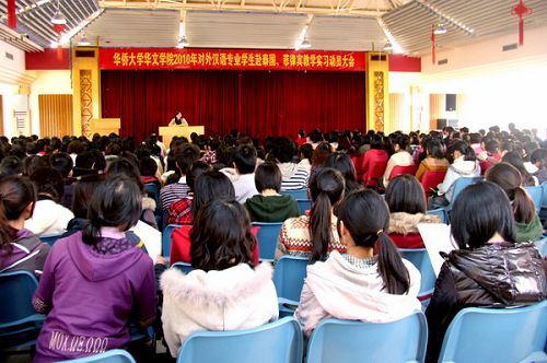 中新網3月12日電 據華僑大學網站消息,3月11日下午,華僑大學華文學院召開2010年對外漢語專業學生赴泰國、菲律賓教學實習動員大會。院長孫汝建、黨總支書記兼副院長趙明光與學院辦公室、教學辦、培訓部、招生辦、學生辦等部門領導,以及教學實習的帶隊老師和07、08、09級對外漢語專業的353名同學參加大會。