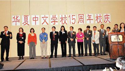 中新網5月4日電 據美國《世界日報》報道,為了慶祝建校15周年,美國華夏中文學校日前舉辦慶祝晚會,中國駐紐約總領館代總領事董曉軍、新州聯邦眾議員霍特等官員、社區名流、華夏部分往屆總校長、各分校校長、董事長和教師、學生代表200多人歡聚一堂,共同分享“華夏人”15年來的成果和喜悅。