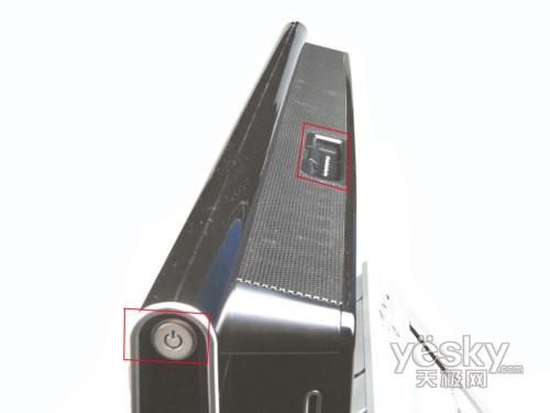 從主機正面看不到任何突兀的按鈕,左下方的LOGO認證和右下方的home按鍵顯得異常醒目。在機身上部集成 了webcam 攝像頭,根據顯示屏四周的紅外偵測器可以自動判斷用戶位置,做到精準定位。