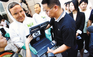 昨天(25日),三位國際環(huán)保組織綠色和平的志愿者出現(xiàn)在惠普中國總部門前,每人手捧一部帶有“毒”字樣的惠普筆記本電腦。綠色環(huán)保一位負(fù)責(zé)人表示,由于惠普推遲其承諾的在產(chǎn)品中消除兩種有毒物質(zhì)的時(shí)間,因此用這種方式勸惠普“戒毒”。