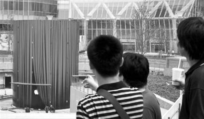 只不過揭開了紅色帷幕的一角,眾多“蘋果粉絲”已經按耐不住激動的心情,紛紛實地圍觀這座神秘建筑。