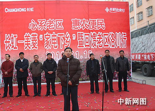 中新網(wǎng)1月18日電 1月16日,“長虹-美菱家電下鄉(xiāng)暨回饋老區(qū)洛川行”現(xiàn)場(chǎng)儀式活動(dòng)在革命老區(qū)延安洛川縣舉行。陜西省財(cái)政廳、商務(wù)廳、陜西省消協(xié)及延安市、洛川縣有關(guān)領(lǐng)導(dǎo)出席了活動(dòng)。