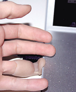 不過,就在醫(yī)生準(zhǔn)備為杰里重建矽膠手指的時(shí)候,從跟杰里的聊天中無意中得知他是一名軟件工程師,曾當(dāng)過電腦黑客后,醫(yī)生向他提出了一個(gè)新穎的建議:可以在安裝假指時(shí)順便植入一個(gè)看不見的U盤,杰里當(dāng)場欣然答應(yīng)。于是,杰里的指頭變成了一個(gè)容量為2GB的U盤。美中不足的是,當(dāng)十個(gè)手指伸出平齊時(shí),怪怪的U盤手指十分與眾不同。