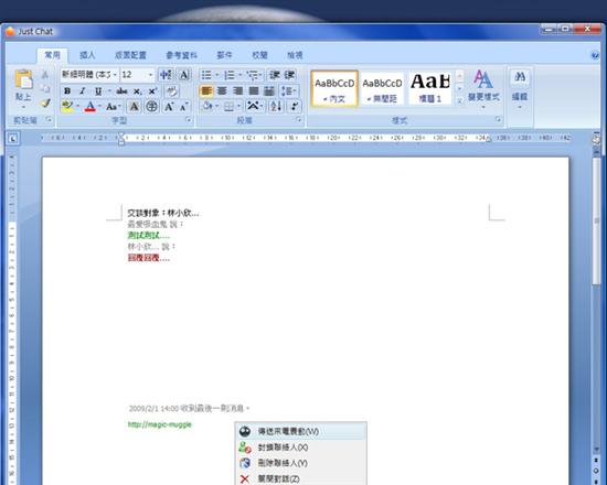 據介紹,Just Chat的原理十分簡單,只是把MSN嵌入外觀像Word、execl這些文書編輯等辦公