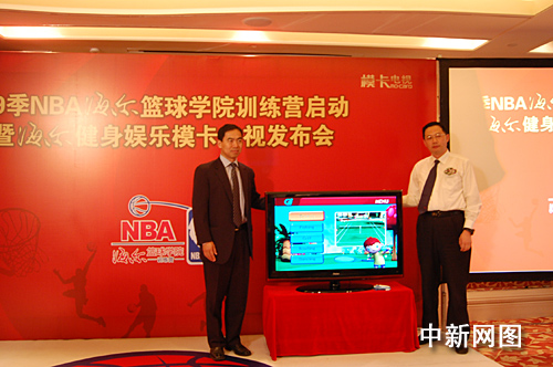 秉承NBA的體育及娛樂精神,在此次啟動儀式上,作為NBA官方指定使用電視產品——海爾彩電推出了健身娛樂模卡電視,并發布了“云媒體”戰略。海爾集團信息產品本部總工程師翟翌立博士介紹,海爾推出“健身娛樂模卡”電視旨在讓更多的人足不出戶就可以快樂健身并體會NBA精神。同時,隨著網絡時代的來臨,針對不同使用習慣用戶的需求,海爾彩電推出了“搜狐在線網絡模卡”和“迅雷下載網絡模卡”,使得人們可以在家通過電視一鍵上網看高清大片,還將聯合更多的網絡內容提供商,讓用戶無需擔心個人儲存設備空間的限制,可以隨時、無限量地自由選擇自己所需要的網絡內容資源。
