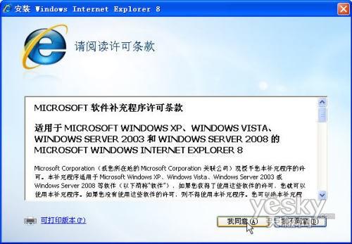 3.按“我同意”,接受IE8安裝許可條款內容;