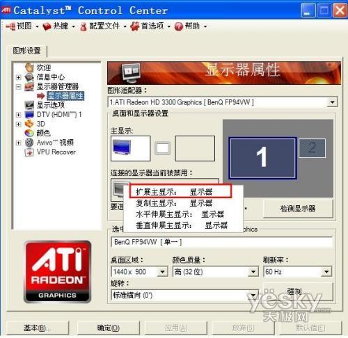 第二步:實現雙屏輸出,這里需要選擇擴展模式;