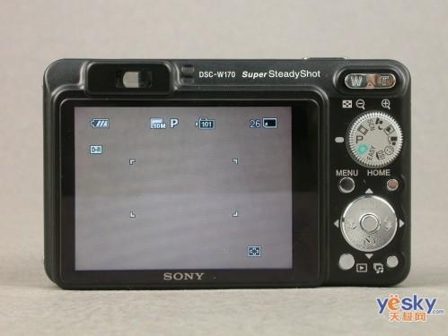 在機身的背面,它還采用了一個2.7英寸大小的液晶屏幕,有效像素為23萬,顯示效果不錯。此外,W170還采用了BIONZ影像處理系統,有效提高相機的反應速度。