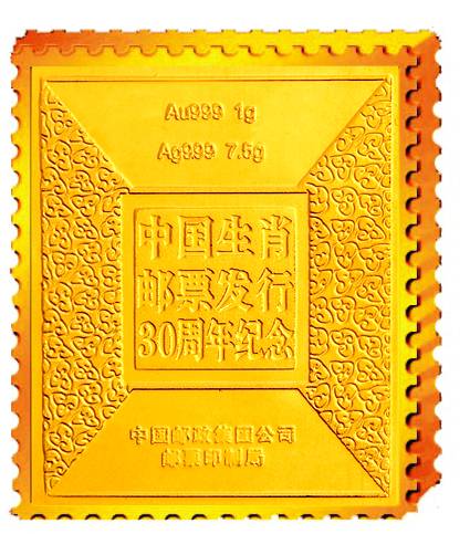 2010年是中國首輪12生肖郵票發行30周年紀念,近日,由中國郵政集團公司郵票印制局監制的第一套“首輪12生肖郵票金磚”正式發行。此舉結束了“生肖郵票”和“賀歲金磚”每年都只能各自獨立發行一枚的歷史,一舉實現了擁有一套生肖藏品,就能同時擁有二個生肖大全套的夢想。