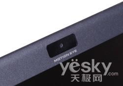 前面我們已經(jīng)對它頂蓋材料做過介紹,這種碳纖維選材結(jié)合LED背光能夠讓屏幕做得非常纖薄,側(cè)面厚度僅有5毫米。屏幕邊框同樣也采用這種合成材料,邊框設(shè)計很窄,在上方增加了六個膠皮墊腳,起保護(hù)屏幕的作用。在屏幕上方設(shè)計了一顆攝像頭,其有效像素為640×480,可以滿足一般網(wǎng)絡(luò)視頻需求。