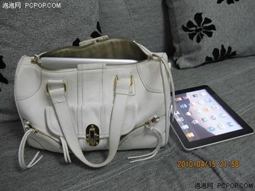 今天拿到iPad,放在包包里和姐妹逛了2小時街,手里提著包包有些重量,但覺得還可以接受,并不是特別沉,但時間長了有點勒手,俗話說“好手難提四兩”。我平時喜歡背大包,可以放很多的東西,經常在地鐵里看到有女孩包包里放小說,有次上班高峰時,看到一個短發MM坐著用EeePC最薄的那款貝殼機帶著耳機看電影,很佩服她的閑情,但也同時發覺確實有很多志同道合的MM喜歡背大包。有人說iPad可以當電子書,地鐵里看電子書的人很多,攜帶是個問題,這里拿自己的包包示范給大家看。