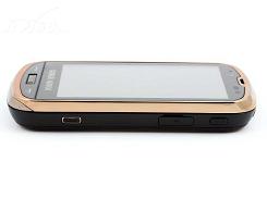 從外觀上來看三星B7620手機采用金色的鑲邊來包裝黑色的機身,屏幕方面它采用3.5英寸WVGA(480×800分辨率)AMOLED觸摸屏,顯示效果非常出眾。鍵盤設計也是配備了質感極強側滑30度傾角QWERTY全尺寸鍵盤。其以奢華質感的銅金色調與Armani設計的元素線條完美結合,配合WM智能系統充分體現出該機的深刻底蘊。