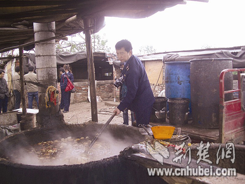 將從餐館收回的殘渣剩菜煮開后,濾出表層的油在深夜偷偷賣給身份不明的商販,剩下的喂豬。昨日,武漢市工商局東西湖分局根據舉報,在該區一養豬場內查獲一“地溝油”加工窩點。
