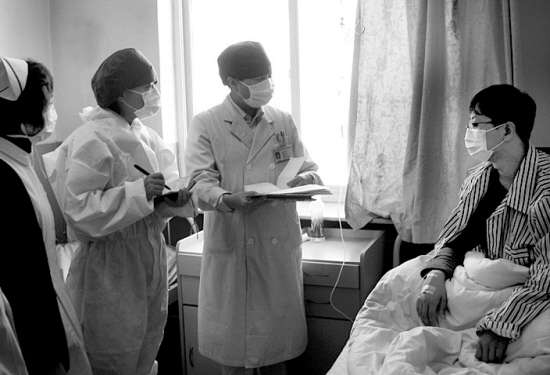 “趕緊匯報,又送來一個。”忙碌中的婁憲芝又接到了“命令”。一個45歲的男性患者,高燒已經9天,最高體溫39度,經外院治療,現在出現咳血痰、胸悶、呼吸困難,檢測結果確診是甲流。