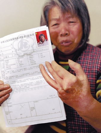王桂蘭告訴記者,她目前依然質疑:首先,她確實左手不能勞作,還有有關部門的證明,為什么一個體檢就讓她變健康了。在實際生活中,她的殘疾左手依然要影響到她的生活。同時,王桂蘭質疑醫生的態度,“手指頭都掉了的,才算殘疾。”這句話太傷人心了。(本報記者 梅天磬 聞達 攝影 王江)